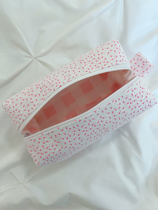 Dainty pink heart makeup bag