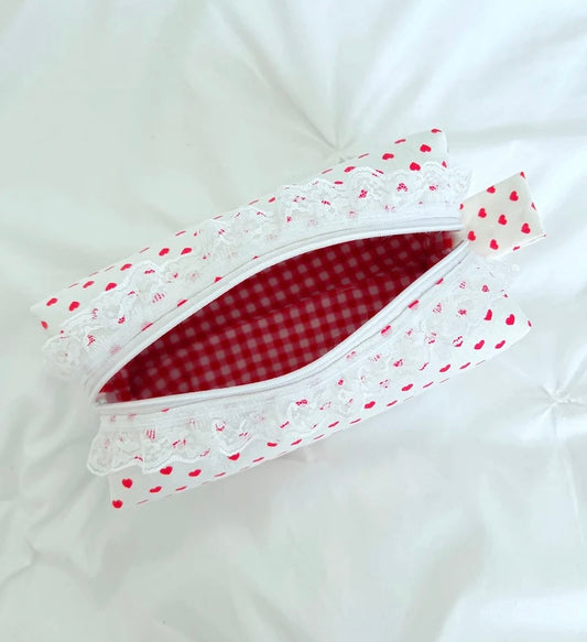 Red heart makeup bag with lace trim